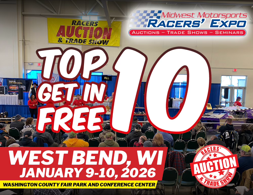 West Bend, WI – The Midwest Motorsports Racers’ Expo is proud to announce a special incentive for racers across the region: drivers who finished in the Top Ten in points at any race track or racing series in 2025 will receive FREE admission to the annual Midwest Racers Auction, taking place January 9–10, 2026 at the Washington County Fair Park …